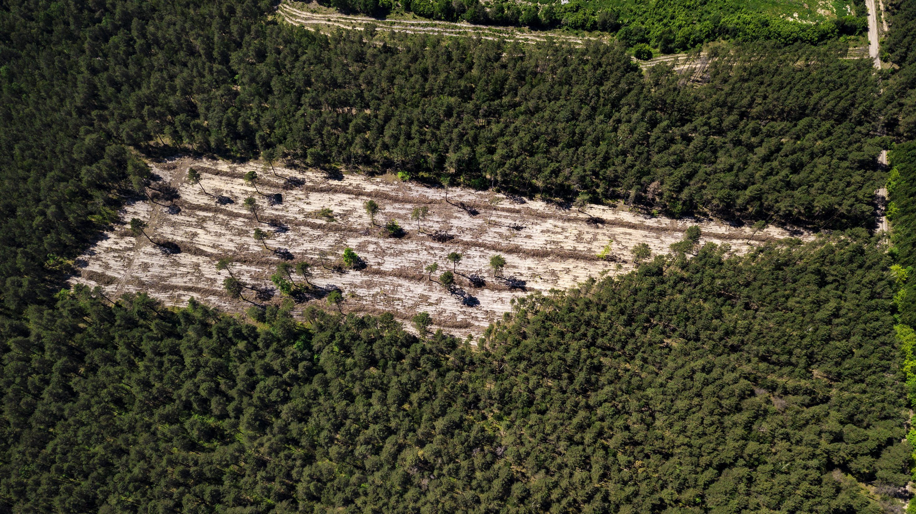 Home›illegal cutting of forest, empty forest glade aerial photography