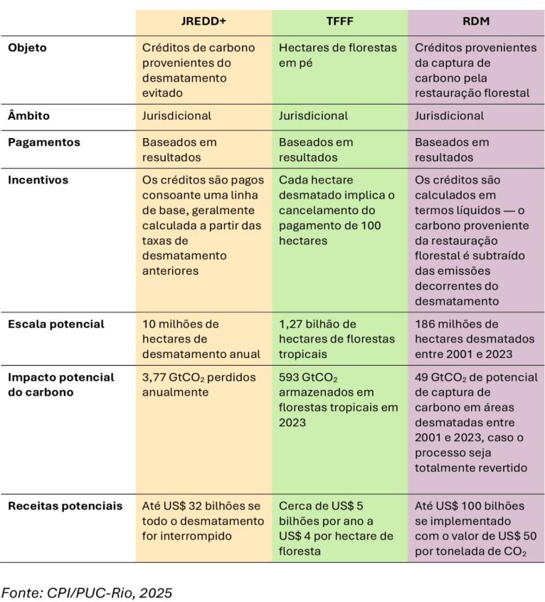 Comparação do financiamento florestal: JREDD+, TFFF e RDM