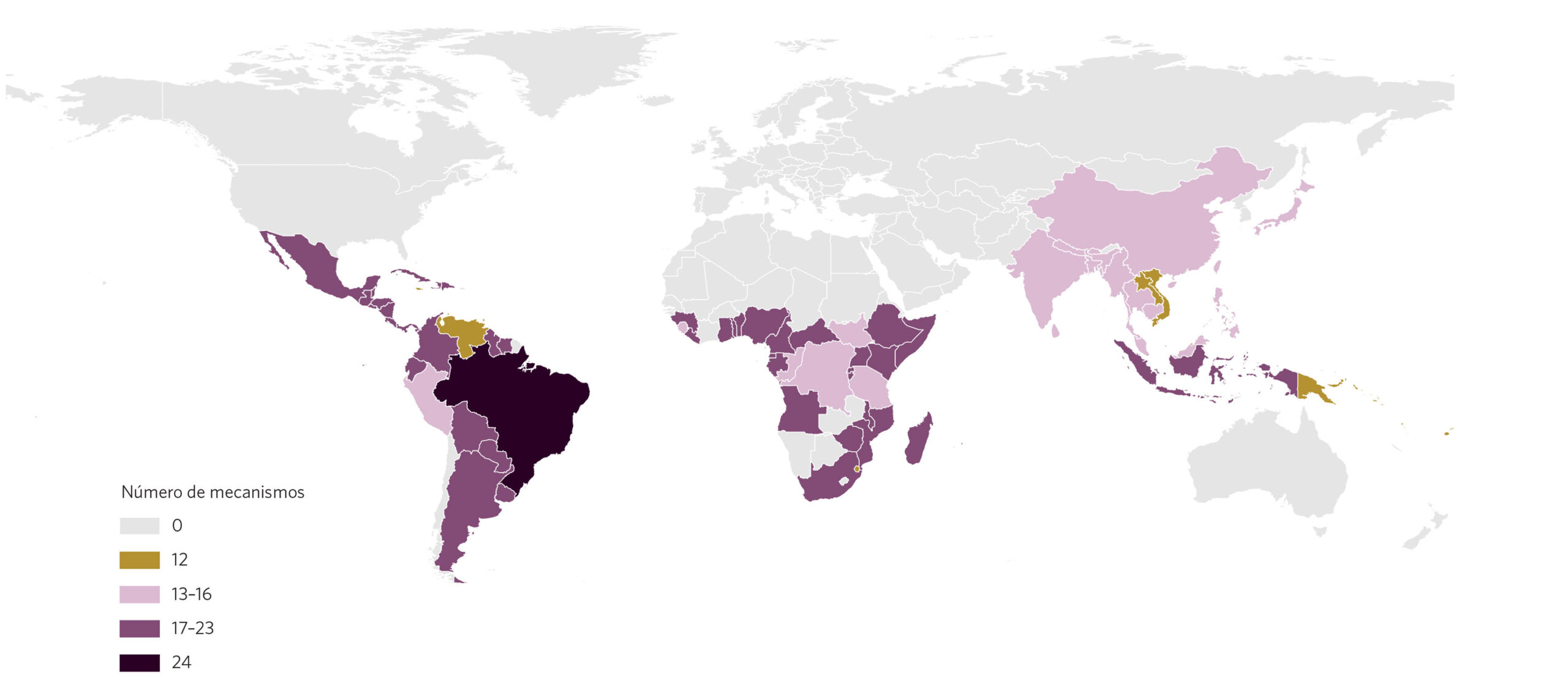 Figura 5. Número de mecanismos elegíveis por países com florestas tropicais