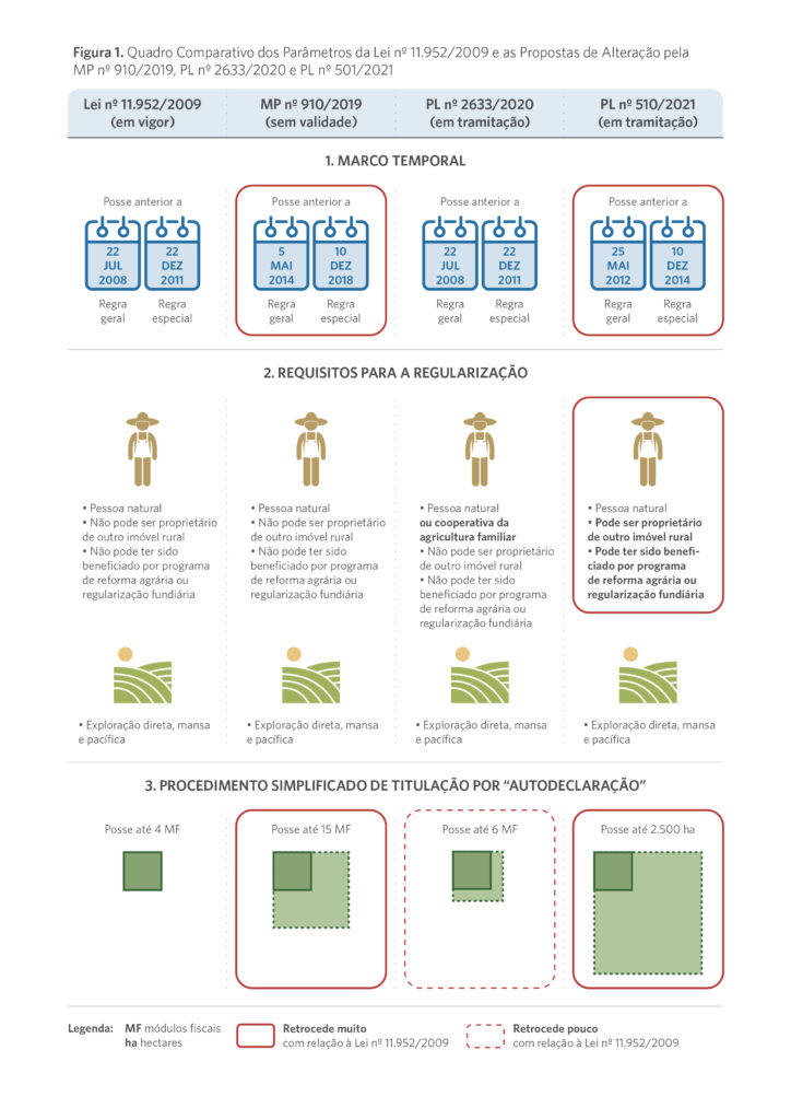 Figura 1. Quadro Comparativo dos Parâmetros da Lei nº 11.952/2009 e as Propostas de Alteração pela MP nº 910/2019, PL nº 2633/2020 e PL nº 501/2021