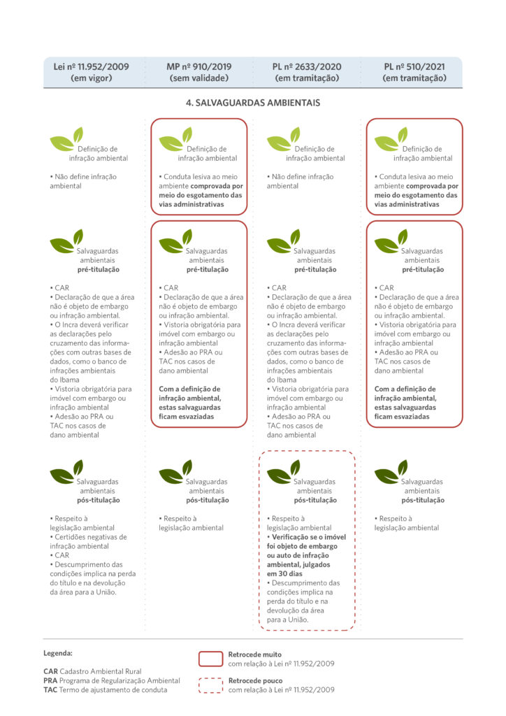 Para saber mais sobre o histórico de tramitação da MP nº 910/2019 e do PL nº 2633/2020 e sobre as salvaguardas ambientais na legislação fundiária, sugerimos a leitura de: