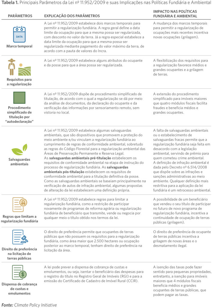 Tabela 1. Principais Parâmetros da Lei nº 11.952/2009 e suas Implicações nas Políticas Fundiária e Ambiental