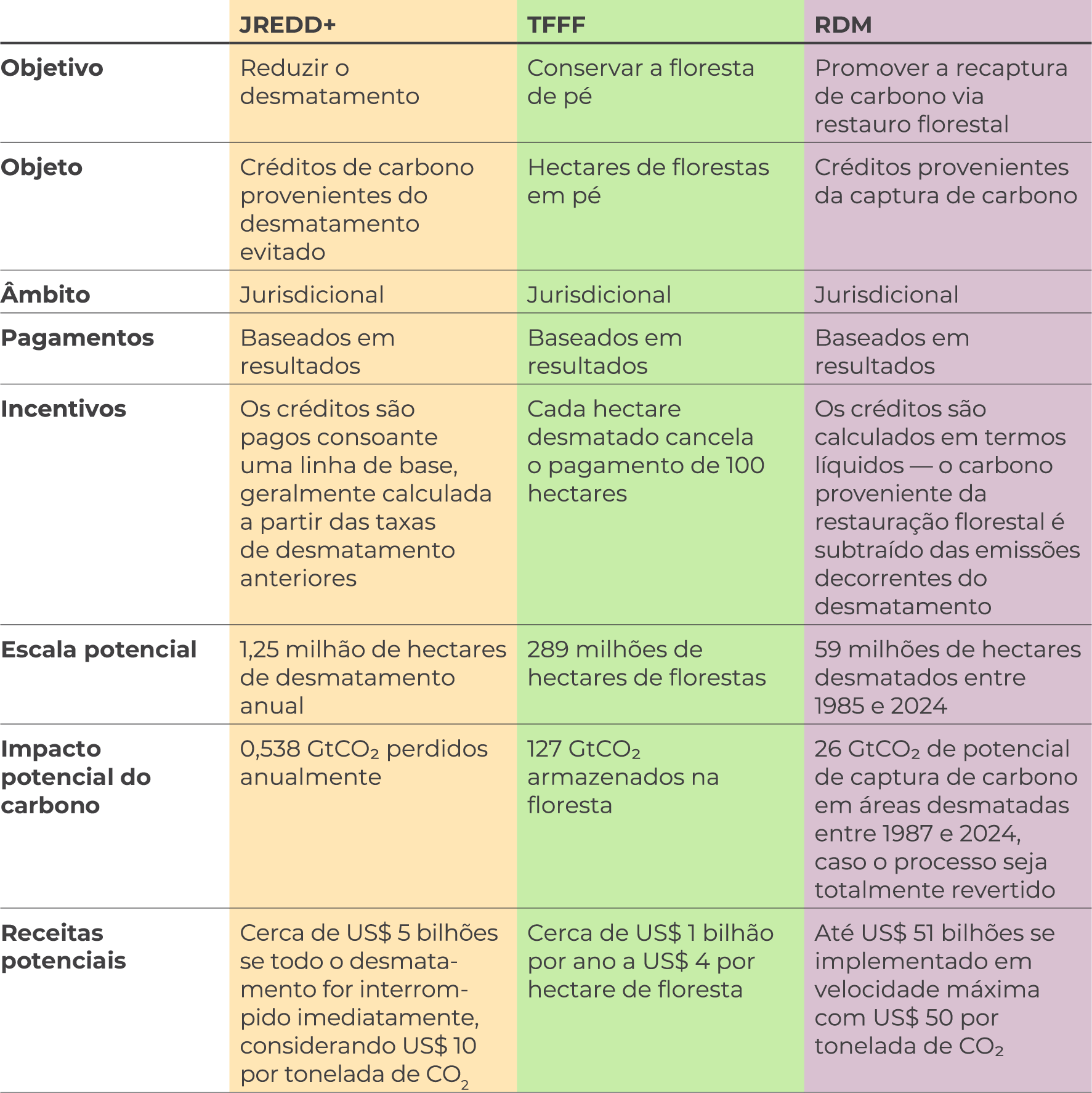 Mecanismos Financeiros para a Floresta: Comparando JREDD+, TFFF e RDM
