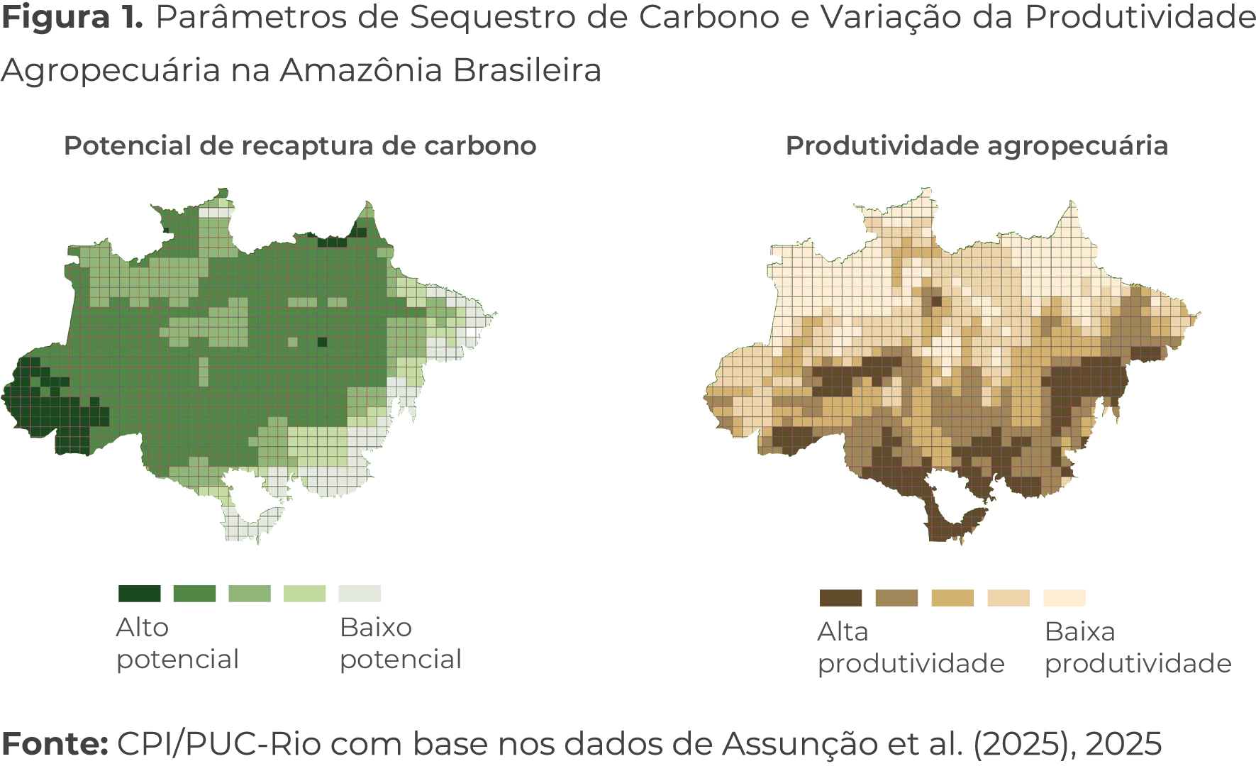 Figura 1. Parâmetros de Sequestro de Carbono e Variação da Produtividade Agropecuária na Amazônia Brasileira