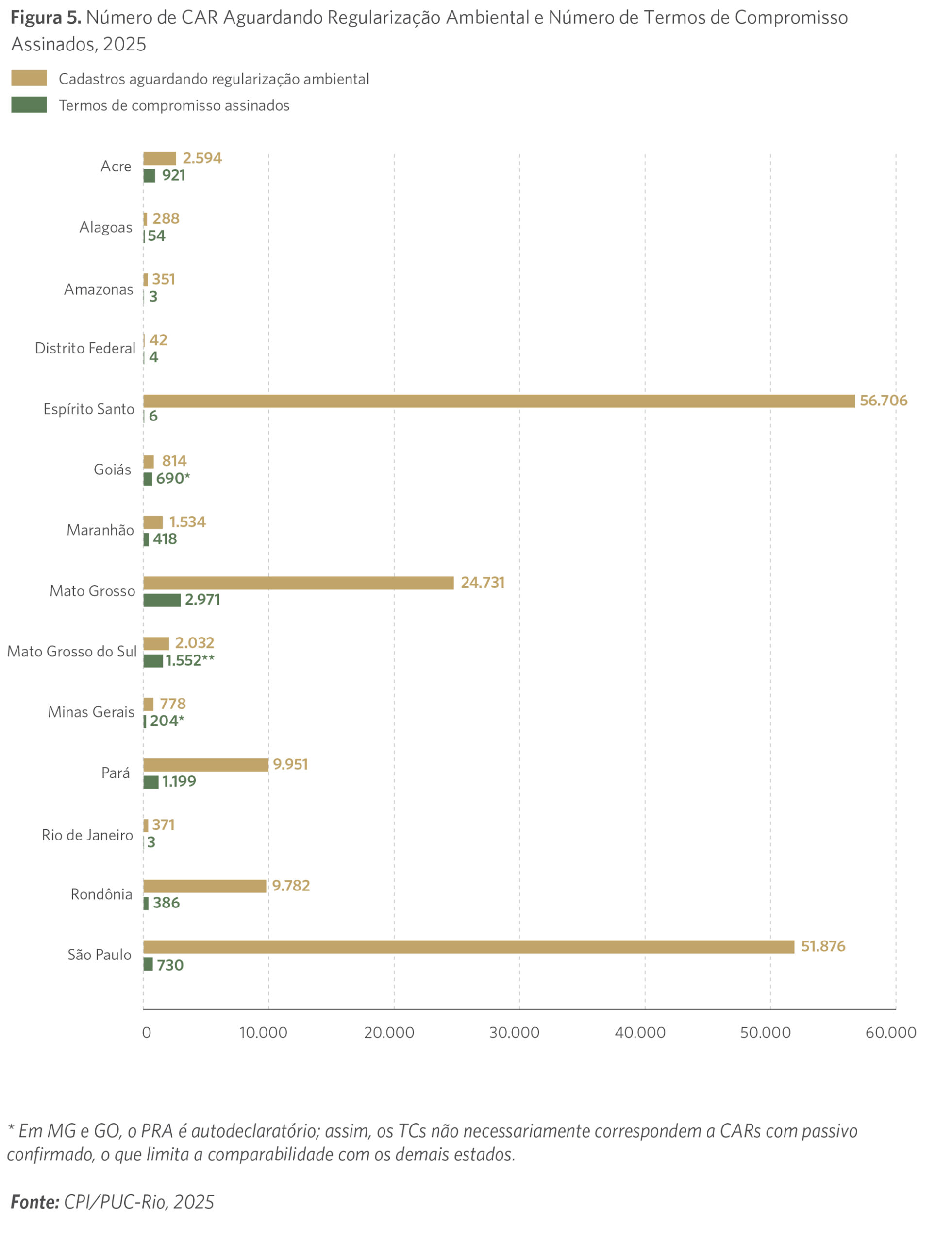 Figura 5. Número de CAR Aguardando Regularização Ambiental e Número de Termos de Compromisso Assinados, 2025
