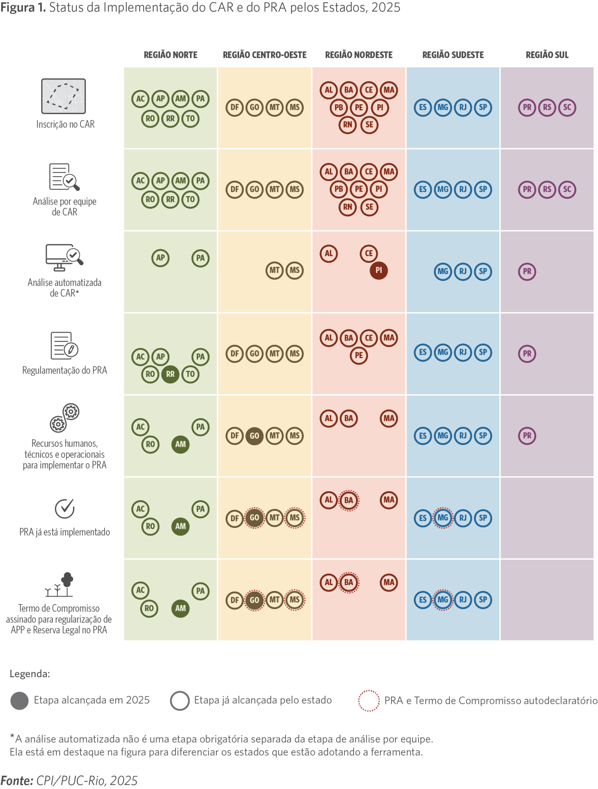 Figura 1. Status da Implementação do CAR e do PRA pelos Estados, 2025
