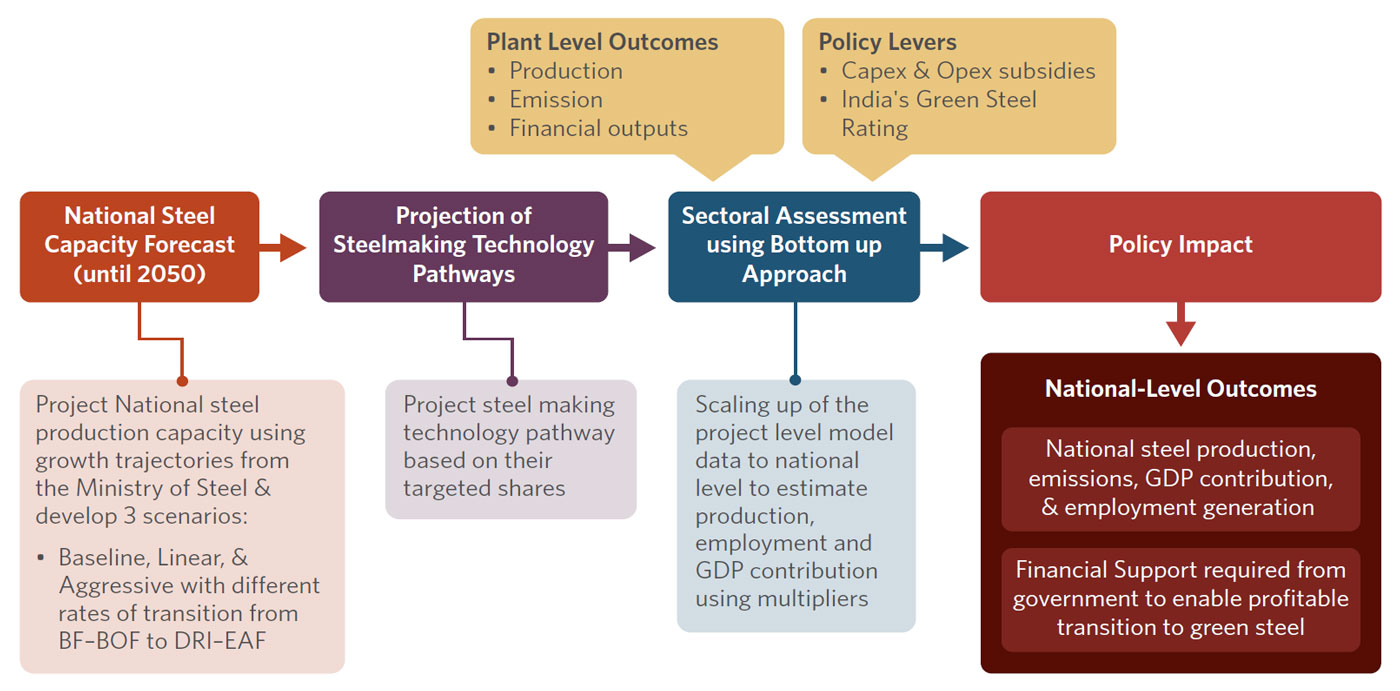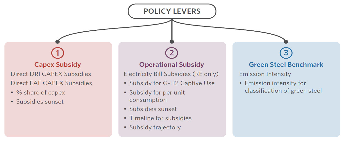 India’s commitment to achieve net-zero emissions by 2070 adds urgency to addressing emissions from the iron and steel sector, one of the country’s largest emitters. Demand is expected to rise, yet commercially mature low-carbon technologies remain limited and costly. Against this backdrop, this policy brief assesses the policy levers needed to support low-carbon steel production in India, examining their implications for emissions reduction, employment, and project economics.