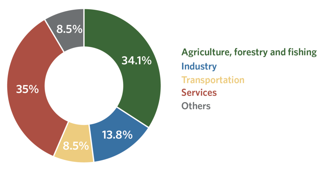 Kenya is highly vulnerable to climate change and is already feeling the effects with a notable increase in climate-related disasters, such as droughts and floods. These events are estimated to create an economic liability of 2-2.8% of its gross domestic product (GDP) every year. This is largely because the economy is dependent on many climate-sensitive sectors, such as agriculture, water, energy, tourism, wildlife, and health. This vulnerability is then worsened when the country is exposed to multiple crises, such as the locust invasion and COVID-19 pandemic in 2020.