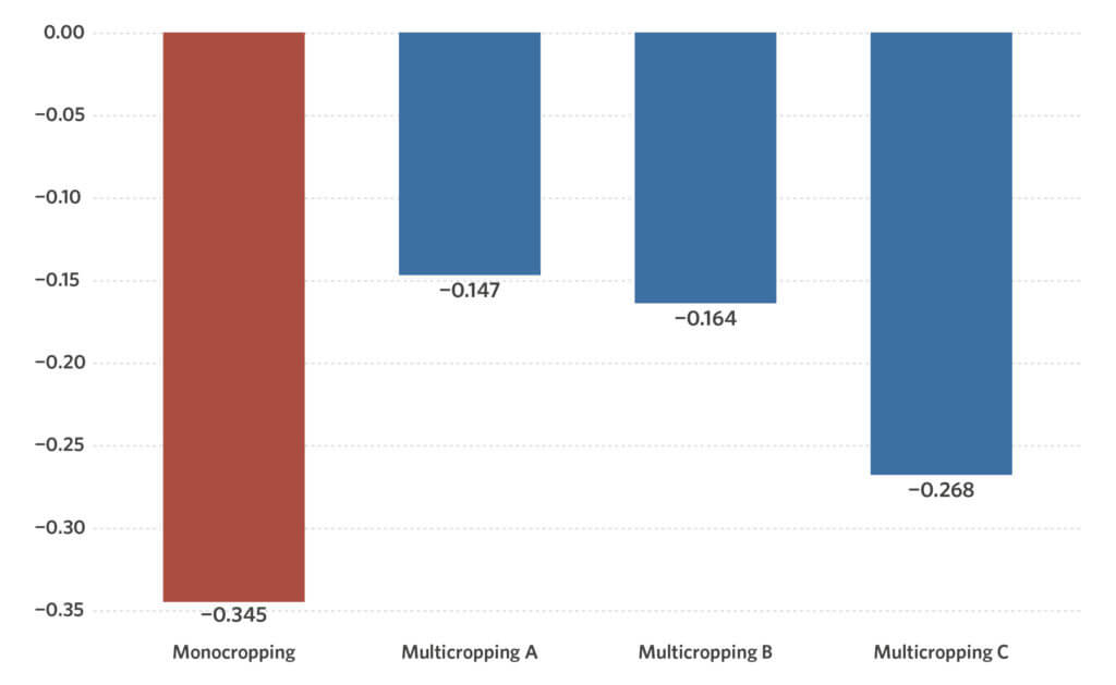 Though in this study we recommend moving away from monocropping, further research is required to investigate the environmental impacts of different types of crops in various geographical conditions. While maize and cocoa provide high economic return compared to palm oil, research shows that these commodities may pose negative environmental impacts
