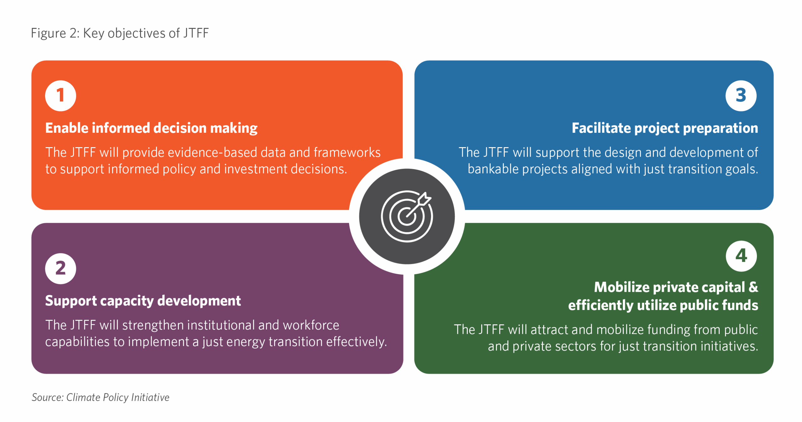 This brief proposes a Just Transition Financing Framework (JTFF) to support state- and sector-level transitions through coordinated, multi-stakeholder action. The framework focuses on enabling evidence-based policymaking, strengthening institutional and workforce capacity, supporting project preparation, and mobilising public and private finance. Together, these building blocks aim to direct capital to priority areas, close knowledge and financing gaps, and support inclusive governance.