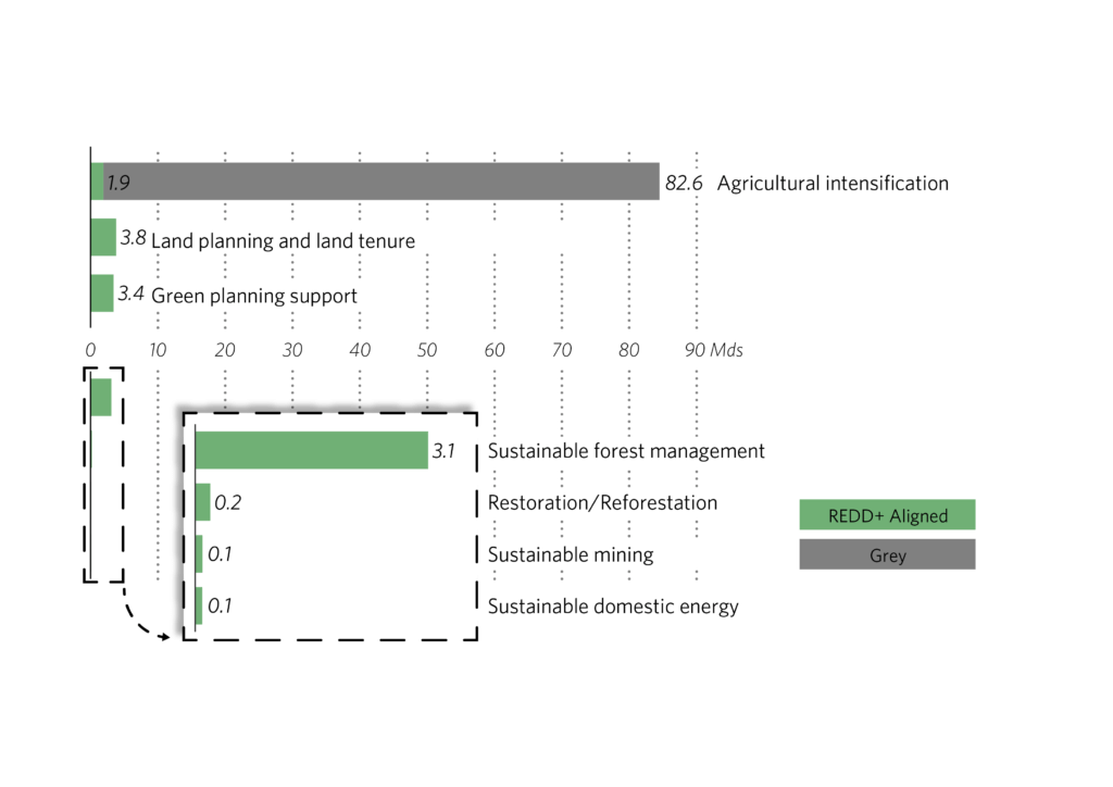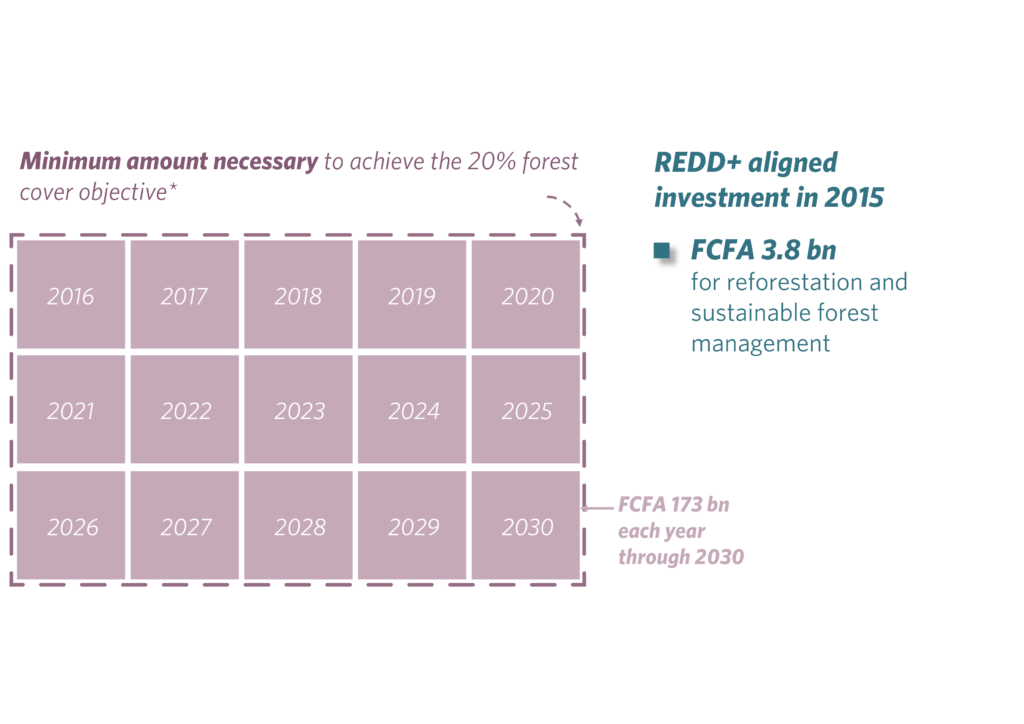 For example, greening existing agricultural finance from domestic, and especially international sources, could increase REDD+ aligned finance by over five times to FCFA 101 billion (USD 169 million).