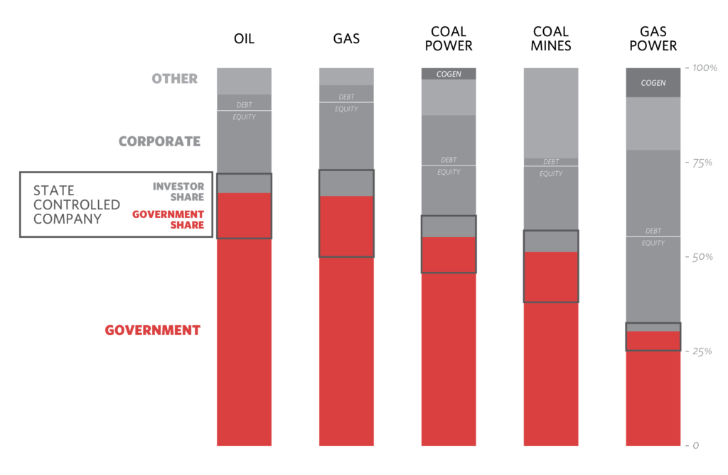 - Governments own 50-70% of global oil, gas, and coal resources, as well as collect taxes and royalties on the portion they do not own. This risk is concentrated in resource-owning and producing countries, particularly major oil producers. However, governments also control much of the policy that could lead either to asset stranding or financial savings.