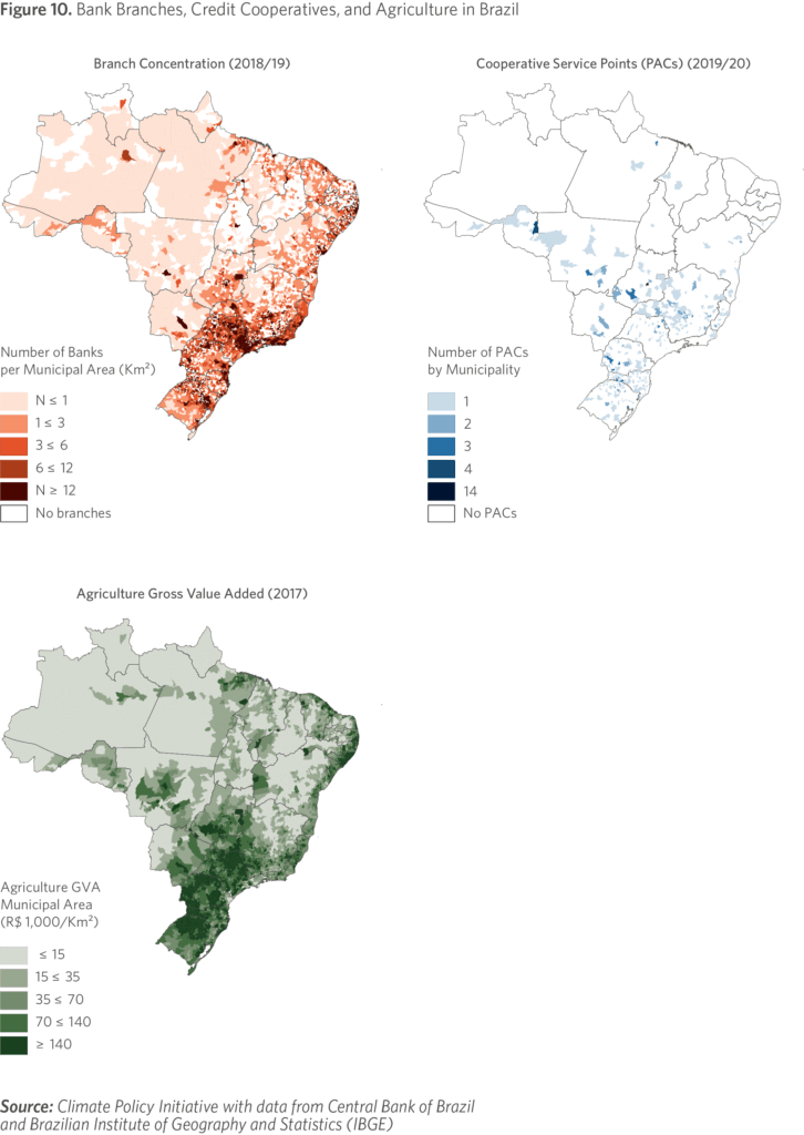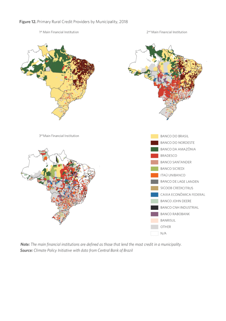 Brazil is a key player in global food supply, ecosystem services, and biodiversity conservation. The country is the globe’s third-largest agricultural producer and its largest net exporter of food (FAO, 2016). Tailored policies in financial services can contribute to modernizing and intensifying agriculture, leading to a more effective management of natural resources. Improvements in the rural credit policy can significantly contribute to the country’s objectives of increasing agricultural production while simultaneously becoming more sustainable.