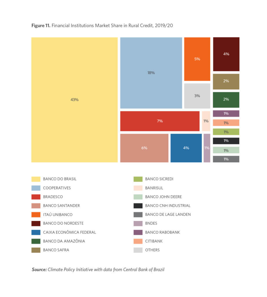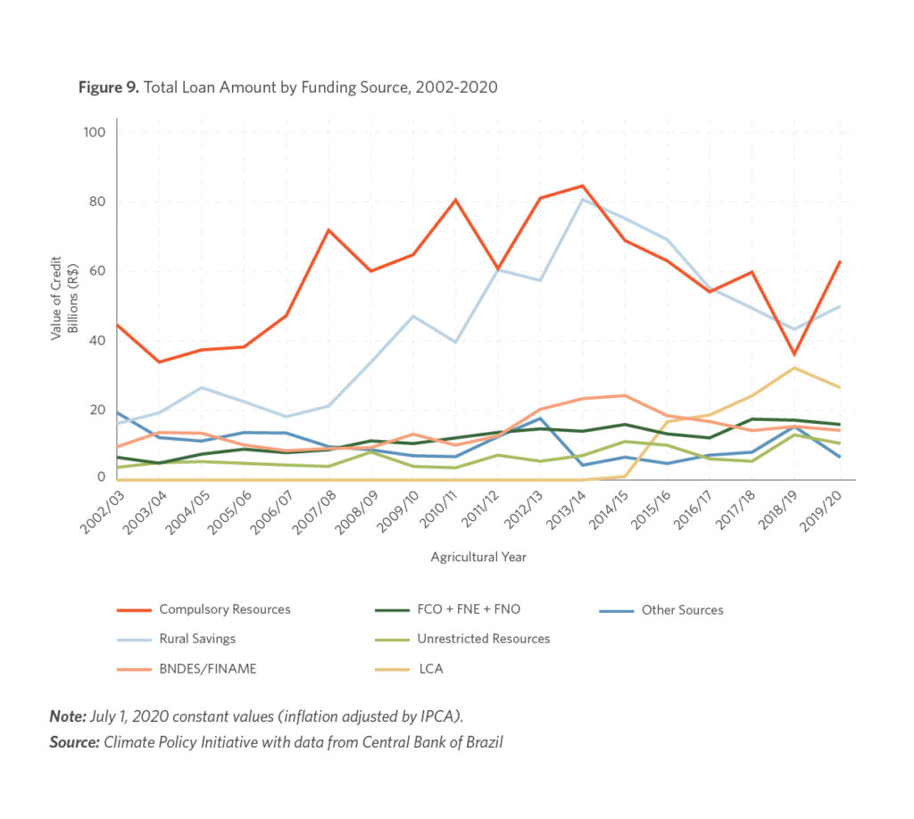 Since the 1960s, rural credit has been Brazil’s primary agricultural policy. In 2019/20 the credit amount corresponds approximately to 30% of the country’s total agricultural production in 2019, R$ 631 billion (MAPA, 2020). This sizable policy has great potential to serve as a mechanism for aligning Brazil’s agricultural policy with its sustainability goals.