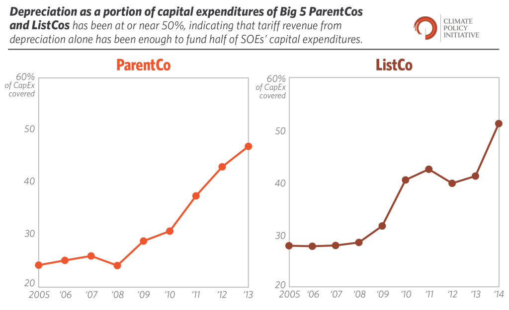 - Due to the high growth rate of the asset base over the last decade, tariff revenues to cover depreciation expenses alone are now large enough to fund almost half of the total capital expenditures of SOEs.
