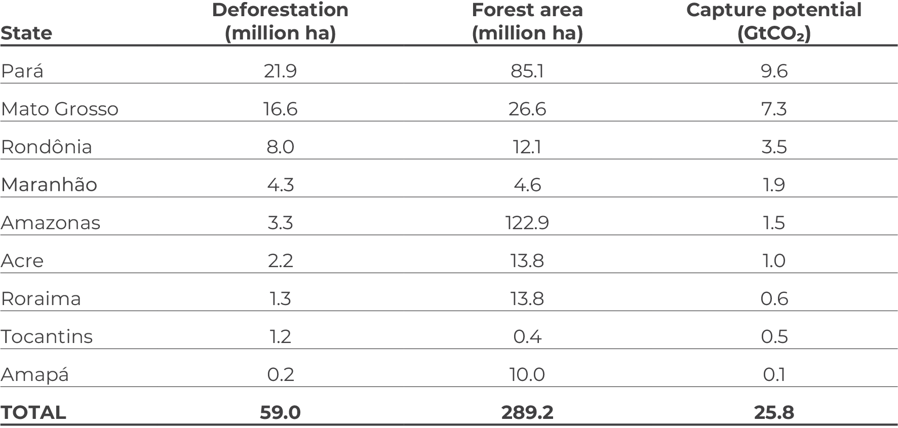 Figure 4. CO2 Capture Potential of Brazilian States in the Amazon Biome