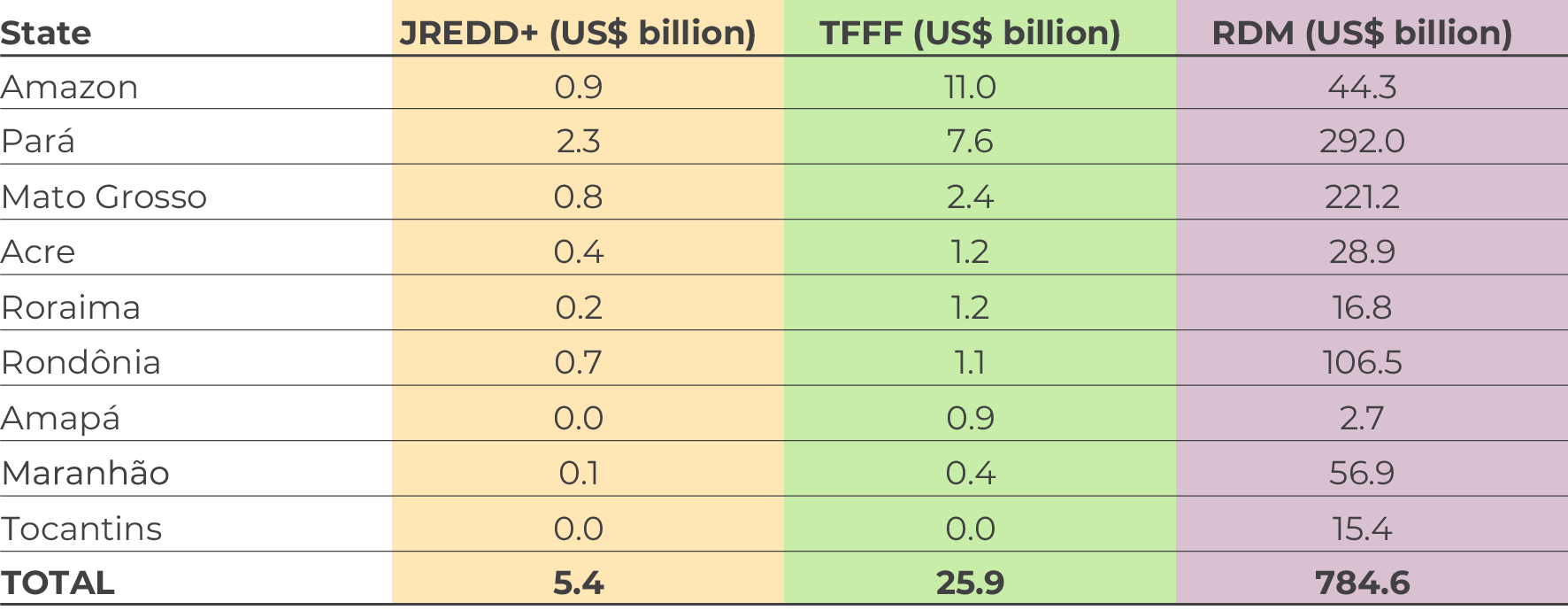 Figure 8. Present Value of JREDD+, TFFF, and RDM for the States of the Amazon Biome (US$ Billion)