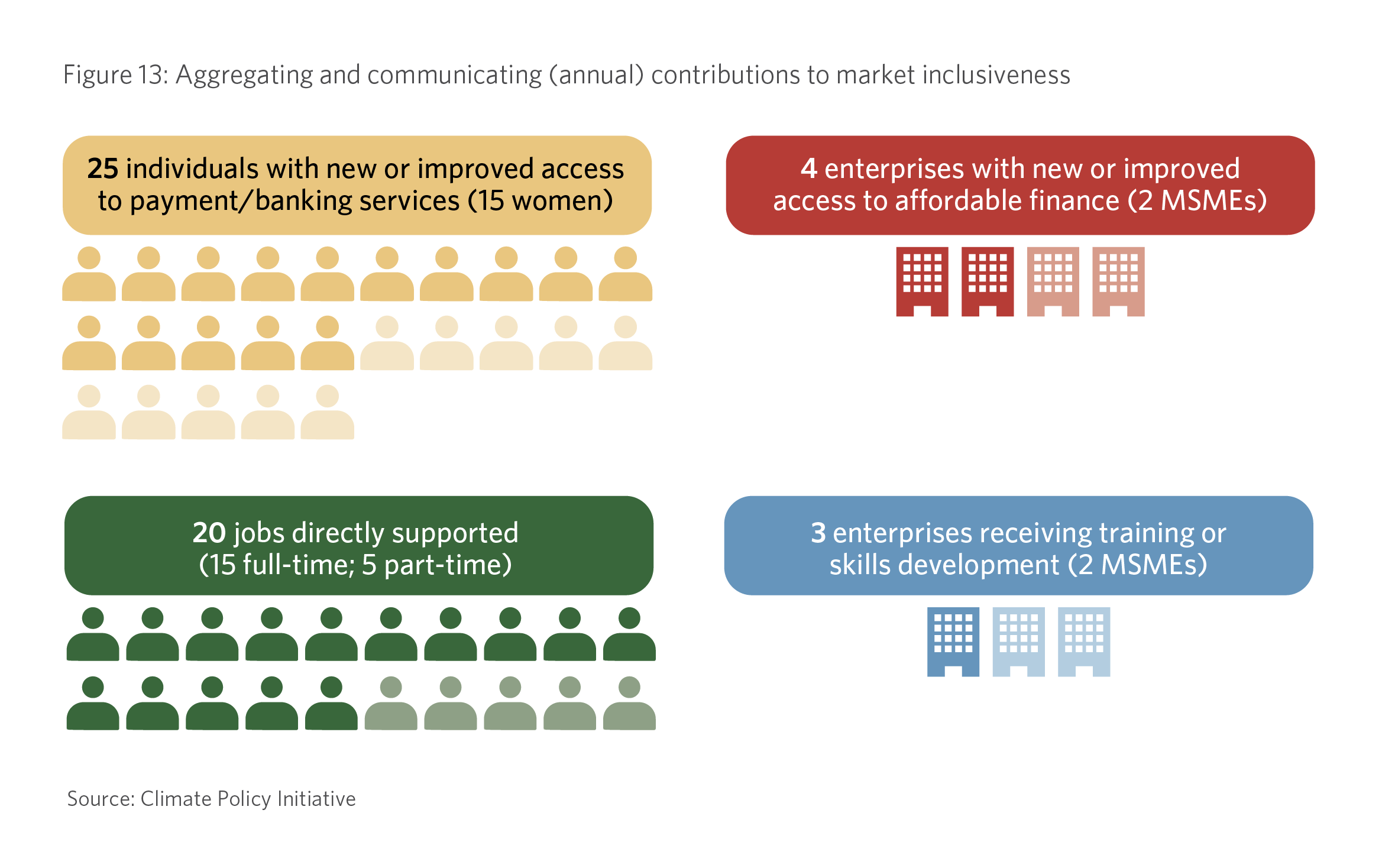 3. Using the evidence base generated from tracking results indicators to inform broader, global discussions on the types of financing needed from different actors and where scarce public climate finance may be strategically and optimally deployed.
