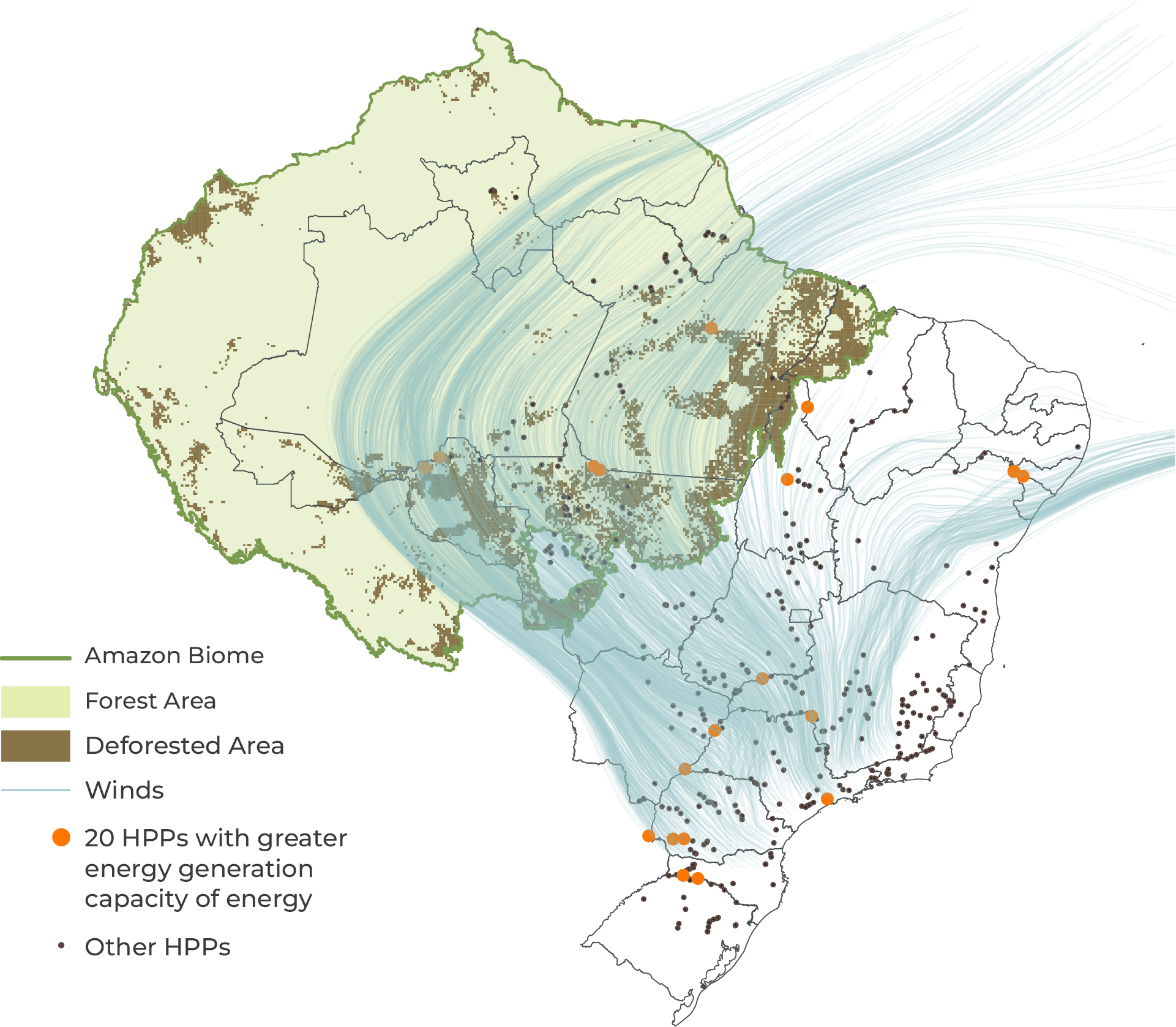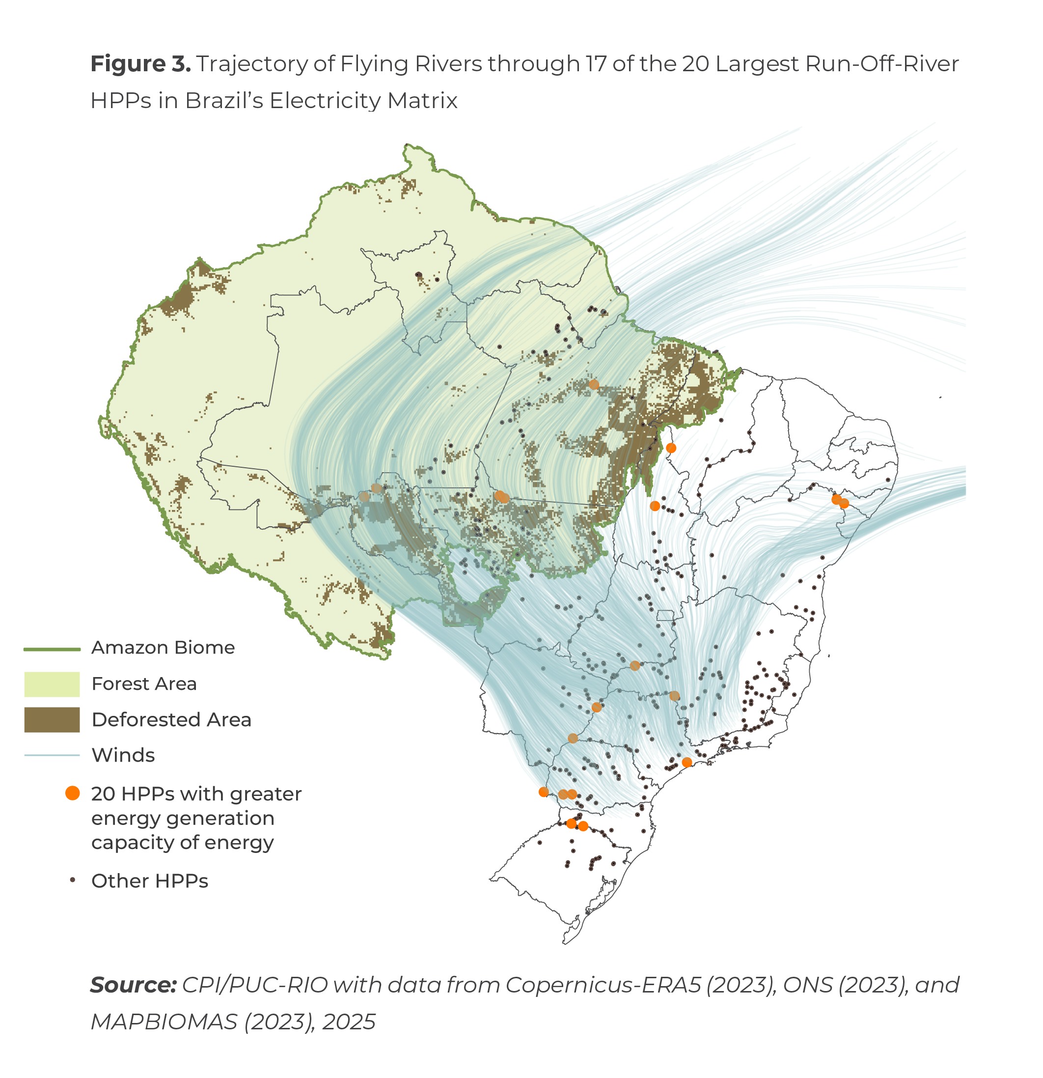 Figure 3. Trajectory of Flying Rivers through 17 of the 20 Largest Run-Off-River HPPs in Brazil’s Electricity Matrix