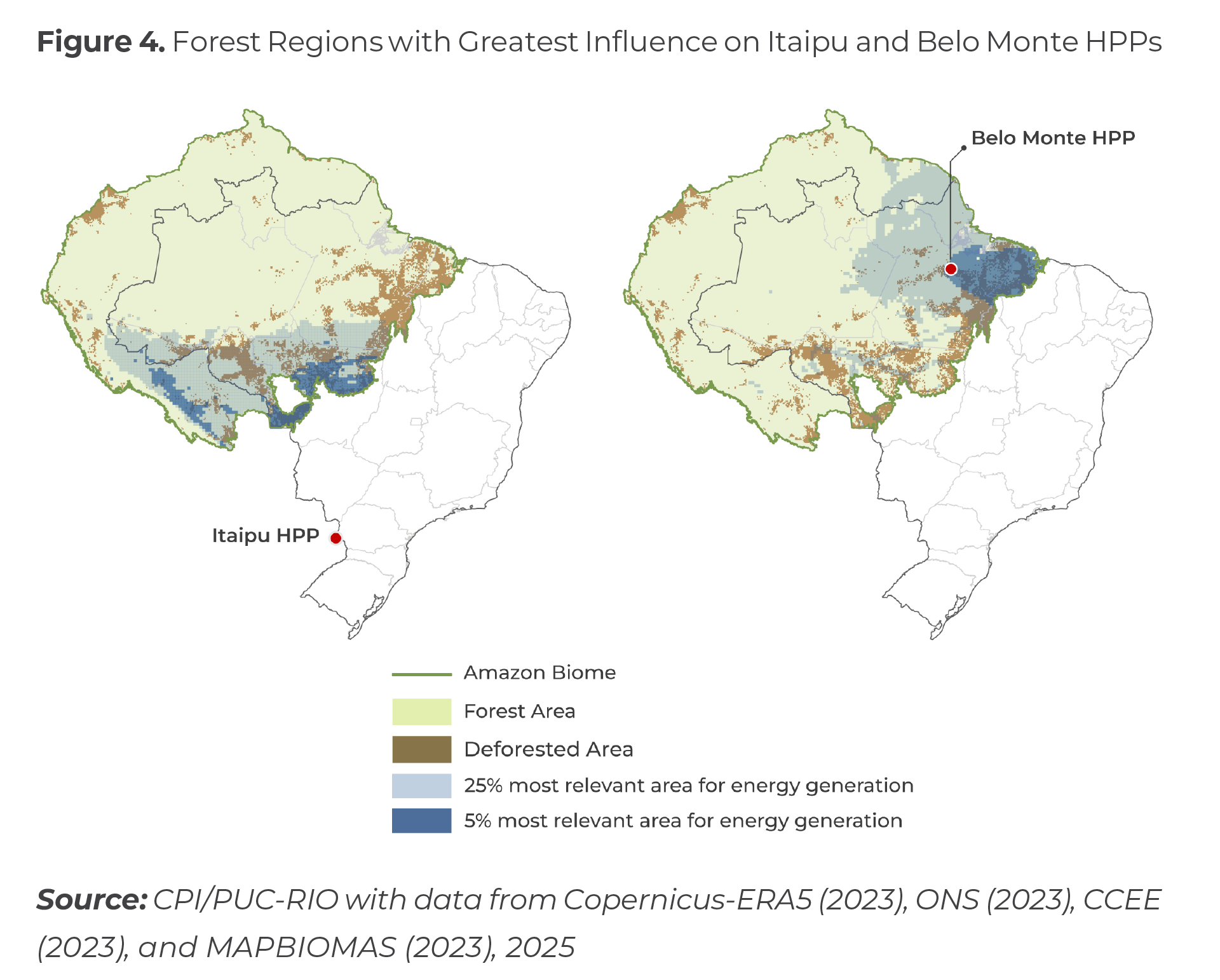 Source: CPI/PUC-RIO with data from Copernicus-ERA5 (2023), ONS (2023), CCEE (2023), and MAPBIOMAS (2023), 2025