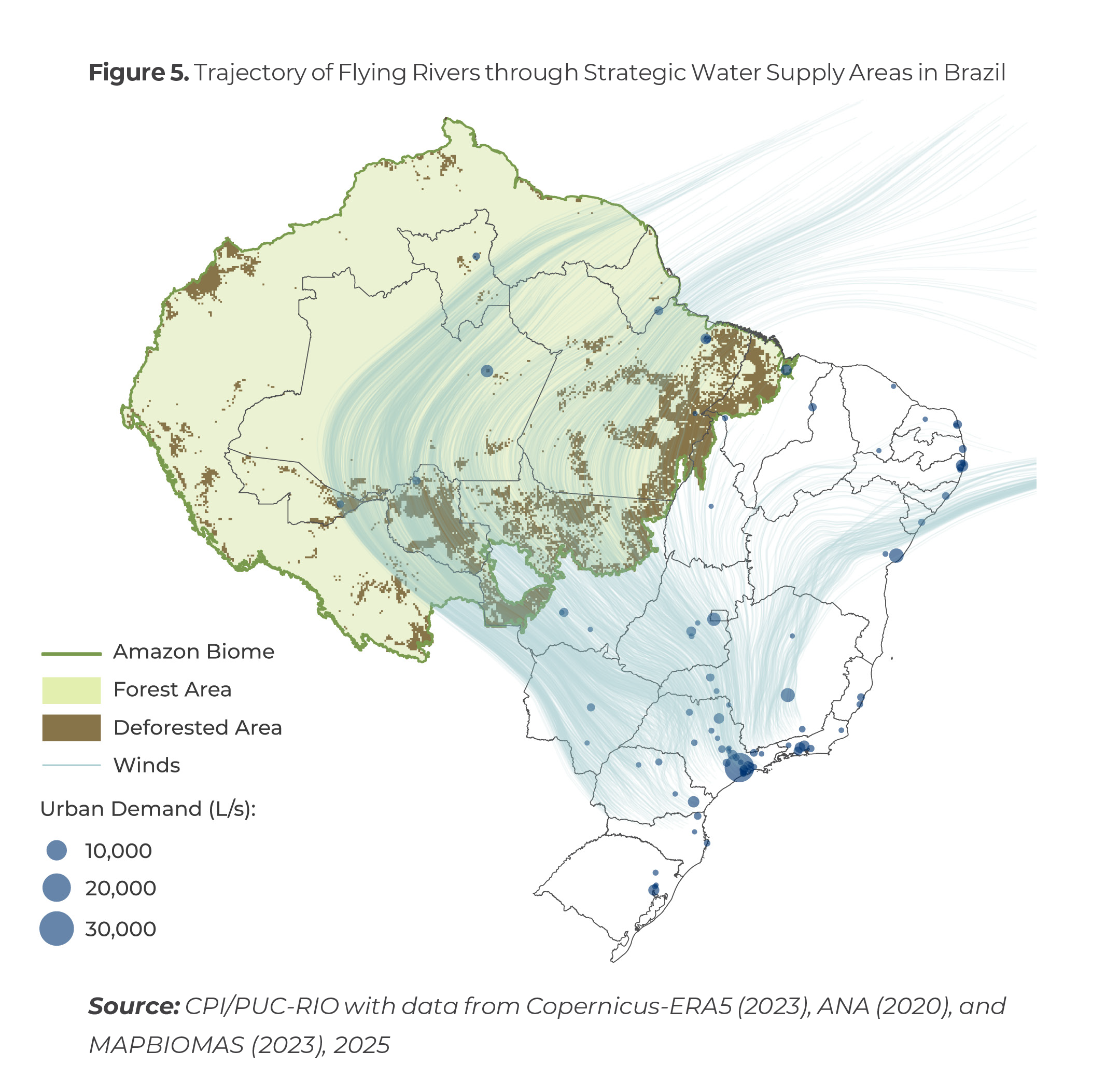 Figure 5. Trajectory of Flying Rivers through Strategic Water Supply Areas in Brazil